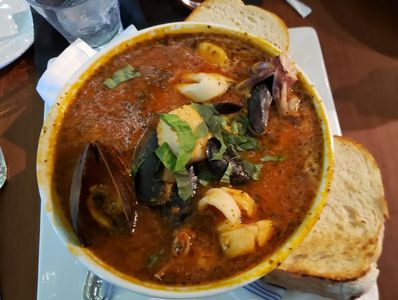 Excellent food!. The range of offering goes from burgers and tacos to high end seafood dishes. My absolute favorite and highly recommended dish is their Cioppino. Cioppino is a seafood stew in tomato sauce. This dish is loaded with seafood including lobster, squid, scallops, and mussels. The sauce is excellent and you get bread to sop it up with. Be careful ordering an appetizer with this dish as it is extremely filling and you will want every last drop. Other items I enjoyed were the seafood tacos, lobster rolls. Highly recommended !!!